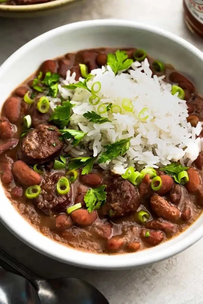 Serve: Spoon over hot white rice. Garnish with green onions or a splash of hot sauce.